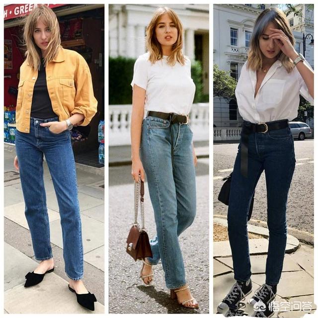 白色t恤搭配牛仔褲,再常見不過,我們可以用一條腰帶來打造高腰線,突出身材的好比例。當然,白襯衫搭配牛仔褲的時候我們同樣也可以用這種方法,一樣可以更加的顯高顯瘦。說到顯高顯瘦,我們也可以用一件短款的外套,搭配一條高腰的牛仔褲,加上用心的配色,簡簡單單,卻有十足女神範。